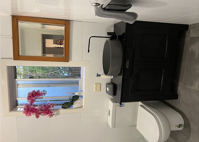 The main bedroom boasts a Queen four-poster bed, a private courtyard, and a quirky outdoor hot and cold shower — perfect for rinsing off after a day at the beach. The second bedroom has a Queen Bed and also a private courtyard.